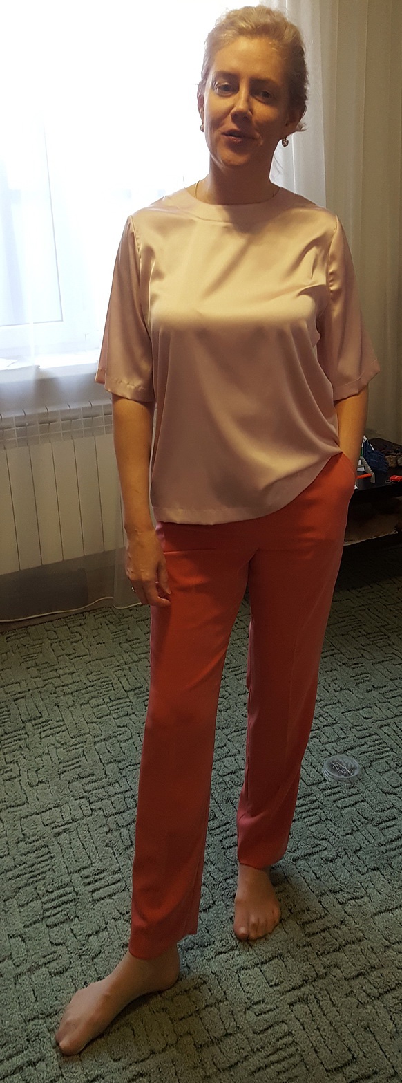 OmeLa Опубликовано 2 мая, 2020 Автор Поделиться #2487 Опубликовано 2 мая, 2020 (изменено) Основной наряд прост, брючки классические и шелковая блузка.Брюки из костюмного направления и блузка шелковая, недорогой сигмент, в шитье такого же плана, только усмирять и делать дорогим за счет чистого шитья. На блузе горловина притачная, это пожелание клиентки. Брючки по злачевской, ткань вроде костюмная но тонкая и пропечатывающаяся. Поставила мешковину карманов с обработкой гульфика и это дало нужный результат, тазовые кочки больше не пропечатались. А вот вместе эти две тканюшки отлично сочетаются и подчеркивают цветосочетание И еще одна вещица. Это накидка в стиле абайи.Ткань с эффектом жатки, полупрозрачная и с сатиным блеском. Из-за это пришлось кроить все в одном направлении. Рукава с широким подбоем, прямые. Изначально делались расширенные, но общий вид не подошел и рукава переделали на прямые. Накидку предполагается одевать поверх блузы. Она красиво струится и смотриться в целом. А так же её можно использовать как и пляжное платье, или летнюю накидку халат. Можно и не подвязываться 3-х метровым поясом ))Все швы потайные и в блузе и накидке, по проймам кант. В накидке узким кантом пришлось обрабатывать и боковые швы. -------------А самый треш, что свадьба из-за этого типакарантина перенеслась в семейные посиделки с регистрацией одних молоды с масками и перчатками, накрылась аспирантура молодых, да и ко всему на неделе свадьбы еще и похороны...... Накидку так и не забрали ((((( Обидно до слез! Ну у меня такое же швейное настроение. Все отложилось и работы перенеслись, готовое лежит и не одно это, настроение в минусах, уговариваю себя сесть доделать заказы что есть летние уже неделю, депресую. Все полетело кувырком .... Изменено 2 мая, 2020 пользователем OmeLa Главное не то что хочешь, не то что делаешь, а то что получаешь в итоге. Ссылка на сообщение Поделиться на другие сайты Поделиться