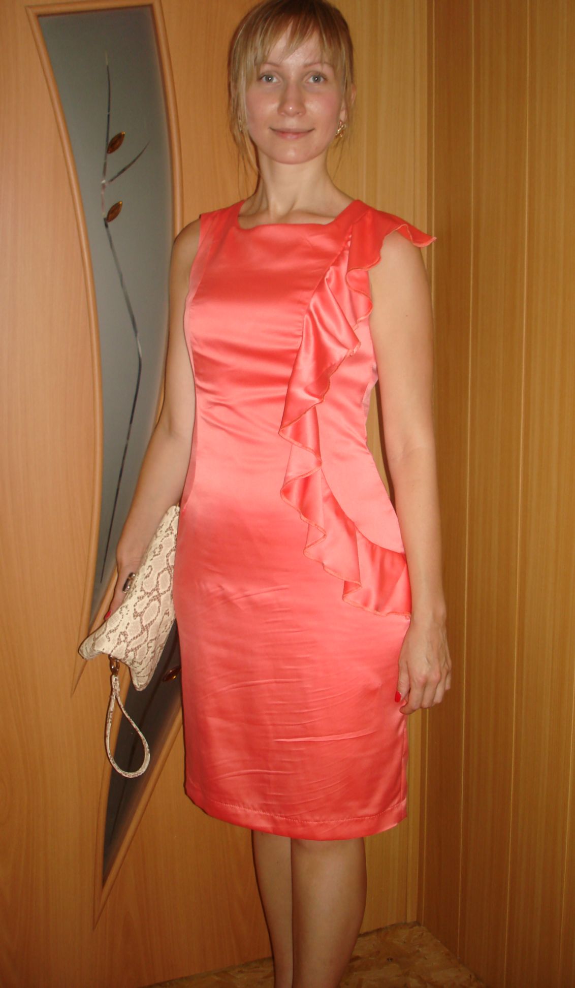 OmeLa Опубликовано 15 июля, 2011 Автор Поделиться #773 Опубликовано 15 июля, 2011 Платье вкусного цвета, цвет розового коралла, модного в этом сезоне. Девушка с размером 90-63-105см Ткань шелковая. Платье на подкладе, тонюсенький батист, не прихоти ради а ткань очень светится и берет пятна. Волан двухсторонний. бочок с воланом кроен отдельной деталью. Изнаночкане для красоты а техническая необходимость, ткань пропечатывает все вплоть до нитки,так припечатала шов обтачки...а вообще ткань очень тянущаяся мягкая форму держит с трудом к флизелину категоричка но послушная в глажке %-)... и все же капризная тканюшка. Главное не то что хочешь, не то что делаешь, а то что получаешь в итоге. Ссылка на сообщение Поделиться на другие сайты Поделиться