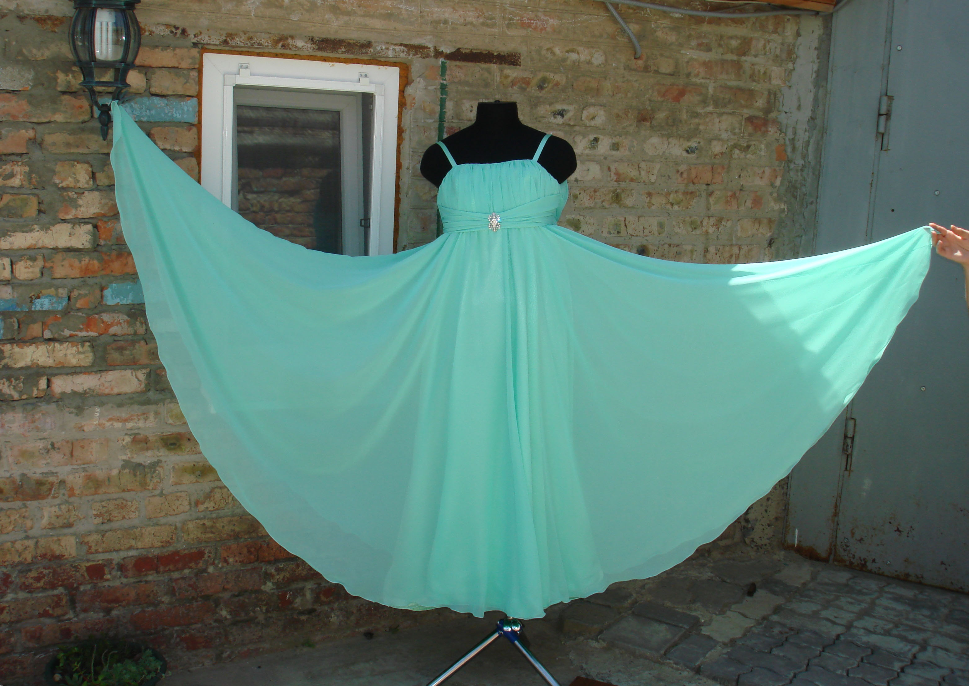 OmeLa Опубликовано 22 мая, 2012 Автор Поделиться #1061 Опубликовано 22 мая, 2012 Нарядное платье на выпускной вечер Окончание начальной школы, оно же скоро будет и к дню рождения наряд. Девочка не маленькая, 40-42р-р. поэтому платье налезло на манекен, не застегнуто и очень кругленько выглядит. Тонкий шифон, основная юбка креп-сатин, без подкладки. Не очень люблю шить из него, но подошел только этот оттенок к шифону, пришлось)))) К платью небольшие аксессуары сумочка и перчатки по локоть. а это прототип платьяТехнология пошива простая. Требования одно потоньше-полегче. Подогнала из бязи лиф платья как пробник. Креп-сатин продублирован, подклада лифа из тонкого поплина, всего два слоя вышло. Закреплять регилином ничего не стала, юбка тяжелая хорошо утяжеляет. Драпировка по косой, Застежка шнуровка укреплена регилином от сминания, и на юбке потайная змейка. Юбка основная шестиклинка вставлены годе клинья. Низ юбки для волшебного движения( так назвала девочка этот низ))))) прошит сеткой шириной 3см, нашито почти 6 м. Шифоновая юбка полное солнце. Главное не то что хочешь, не то что делаешь, а то что получаешь в итоге. Ссылка на сообщение Поделиться на другие сайты Поделиться