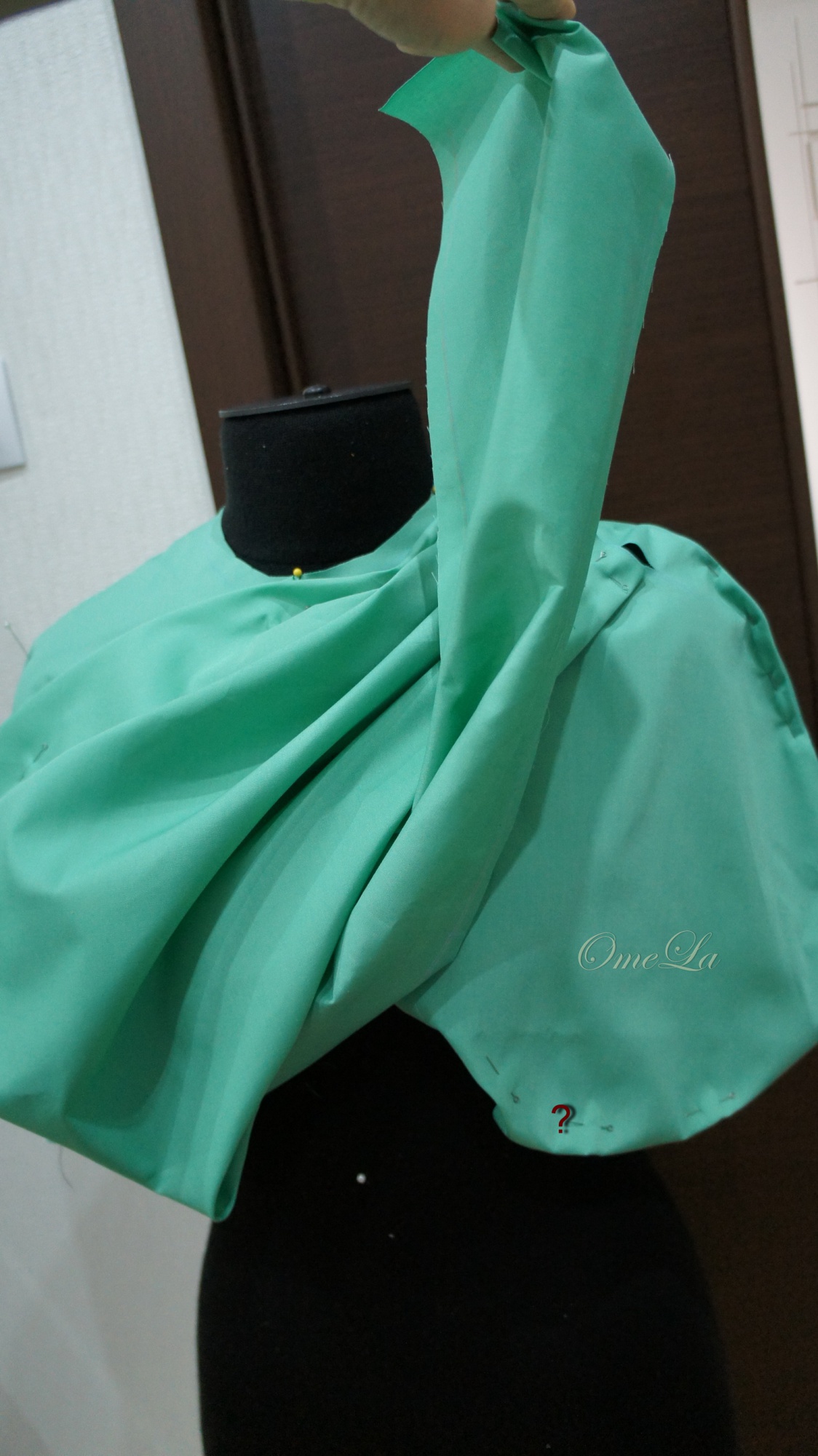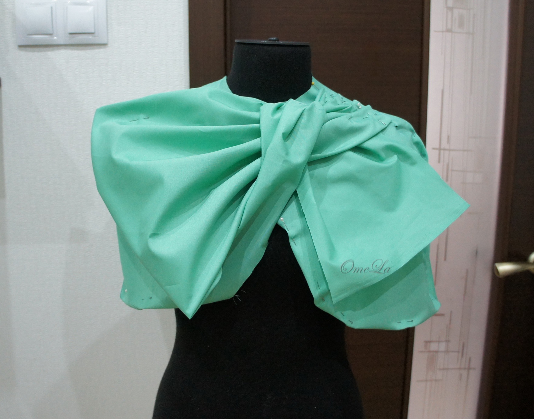 OmeLa Опубликовано 17 мая, 2016 Автор Поделиться #1912 Опубликовано 17 мая, 2016 Дальше.Для этой модели решила делать пробник. Ткань взяла ситец, ровно столько сколько и ткани было с Сезона, 1,7м.По передней части разметила приблизительно расчетную длину застежки и перекрут банта. Расчет был по формуле. Длина застежки = длине перекрута + толщина сгиба ткани. Все вроде довольно просто раз взял, два накрутил хлоп - готово! Вопрос сколько весить в см?? Вот тут как раз и приходилось брать моделировать считать просчитывать и уже потом отмерять. Остальные узлы подгонялись по мере подхода к операции. Спинка пробника. сшиваем плечевые швы переда и спинки. Визуально расчитываю бант-планку. Приложила сантиметр к кейпу. Моделирую бант. Закалываю на кейп, тем самым определяю необходимую ширину складок и их расположение. Перекрут банта кейпа. САмое интересное здесь. Надо определить место вшивания второго банта так чтоб он был спрятан под перекрутом. При моем желании я сделала вшивной бант. У дизайнера есть модели где этот бант идет цельным. Этот вариант мне нравится больше потому что при дальнейшем счете увидим что бант цельнокроенный может быть не слишком воздушным и плоским. Моделирую и закалываю на манекен второй бант. Ключевое слово здесь опять моделирую ... Вопросики на фото это что сразу требуется редактировать в конструкции кейпа. Главное не то что хочешь, не то что делаешь, а то что получаешь в итоге. Ссылка на сообщение Поделиться на другие сайты Поделиться