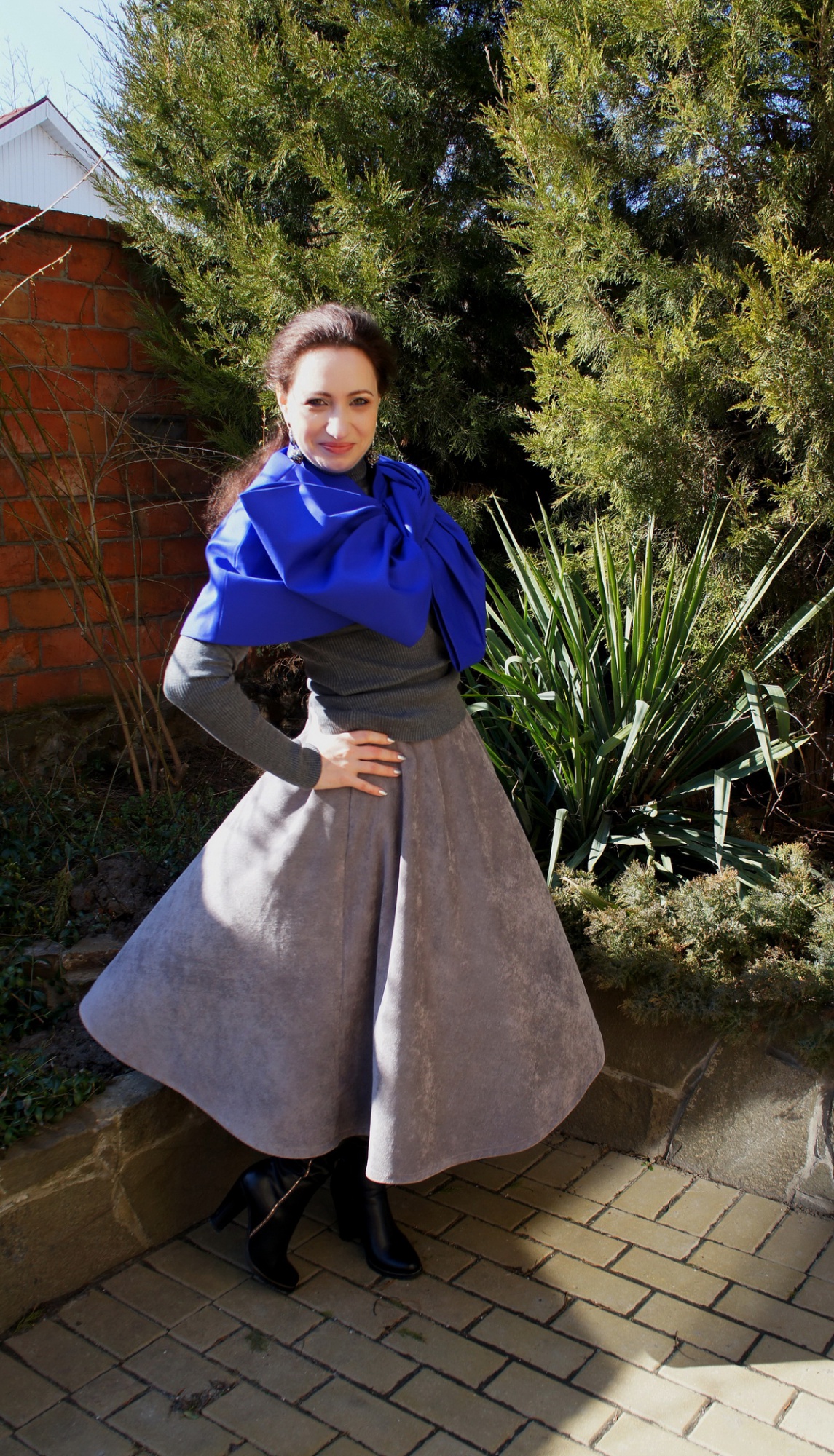 OmeLa Опубликовано 17 мая, 2016 Автор Поделиться #1911 Опубликовано 17 мая, 2016 Вот и настала моя очередь представлять свой проект. Ура!!!Кейп Marc by Marc Jacobs Коллекция Осень-зима 2014/2015.Скажу честно заявку отправляла и представить не могла как это делается, но понравился сразил своими бантами и оригинальностью -отправила. Одобренная заявка повергла в шок, -как я это сделаю?!?! Глаза боятся руки делают....Поехали!Начнем с того что все что представлялось на подиуме все модели, имели конечное сходство, но шились каждая по разному. И как выяснила в процессе у каждой модельки есть и свои технические моменты и разные варианты сборки. Все бантовые кейпы и блузоны шиты немного разным методом. Здесь видно для каждой модели разрабатывались свои размеры исходя из пластичности ткани. Визуально на всех фотках с подиума видна небольшая асимметрия сторон. Есть цельнокроенные банты и есть отрезные как у меня. Есть сильные складки и длины бантов так и не очень. Ткань выбрала самую лучшую, и цвет!! Он необыкновенен. Скажу сразу что цвет в жизни совсем другой, он больше сиреневый с гиацинтовым синим. На всех фотках виден только синий почему то, и отредактировать этот цвет практически невозможно. Крой кейпа в принципе не сложен, если конечно не бант. Нагрузка на переднюю часть идет большая. Разбиралась до чертежа с этими бантами через Paint. Большую часть приходилось моделировать непосредственно на манекене.Выкройка бралась с уже отработанного ранее кейпа который строился на основе жакета. И кейп и жакет я уже раньше показывала здесь, несколько лет назад правда.ВЫКРОЙКАДостала свою выкройку жакета с разметкой от прошлого кейпа. Как смоделировать плечо кейп. Да очень просто! Как делала я. Ставим руки на талию и замеряем линейкой размер от талии до локтя по горизонтали. Это и будет ваша ширина накидки. Перенесла эту цифру на выкройку, соединила плавной линией от плеча жакета. Почему я сделал именно так. Да потому что сколько сейчас кейпиков разных столько и наблюдаю спеленатых по рукам модниц. Рука на талии это самый максимально возможный подъем руки при ходьбе. При подъеме рук все равно рукав задирается но это исключения )) Здесь все намного проще. При желании можно и заузить, но..... банты! Длина кейпа немного выше локтя. Размоделировала на правую и левую части переда кейпа. Разметила предполагаемую застежку и перенесла подрез в плечо. Половинки переда и предполагались быть не симметричными. На спинке сделала прибавку , чего в обычных жакетах не делаю, если только спина не сутулая. Выточку на спинке перенесла в ворот. Главное не то что хочешь, не то что делаешь, а то что получаешь в итоге. Ссылка на сообщение Поделиться на другие сайты Поделиться