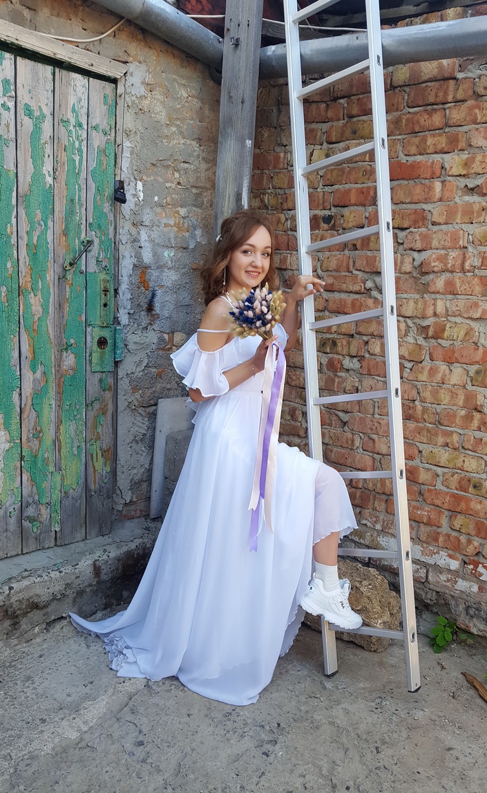 У нас не совсем простое платье. У нас нетрадиционное платье. И это правильно! У нас все в молодежном стиле. И вишенка на торте - кросы!!!!
