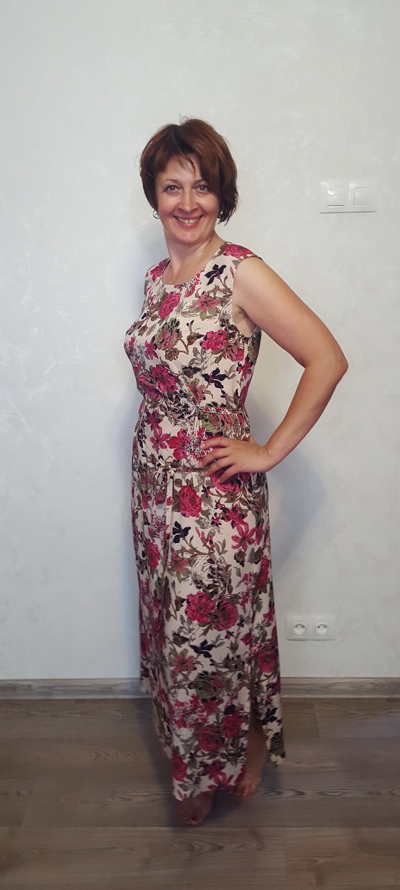 Конечно укреплен, и флизелином и подклад помог, поплин не тонких плотностей, и плечики закреплены и низ на обтачке. Там работы с ним как с платьем полноценным.