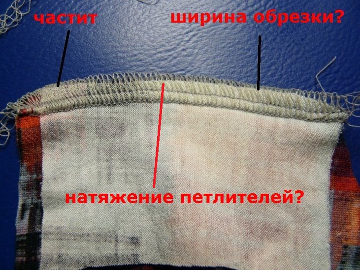 service technician, с 3хниткой с левой иглой вообще как-то непонятно, почему так коряво. Ширину обрезки пробовала и 6-8 мм и 7-9 мм, все одно выходит: петли петлителя висят, обрезанная ткань внутри шва сворачивается. Если ее попробовать иголочкой расправить, то ширина обрезки нормальная, просто почему то сворачивается край ткани. Предвидя вопрос - рычажок формирования шва (который убирается при ролевом) на месте.