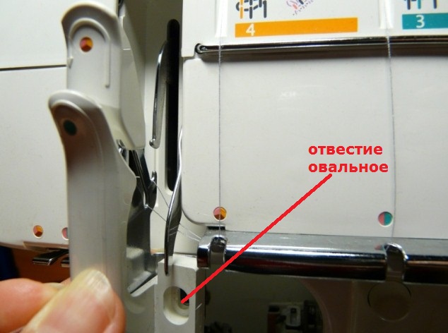 2. Когда снимали накладку с нитеводителя, случайно ее на всякие зацепочки, трещинки не проверили. Может нитка на ней застревает. На фото красным выделил.