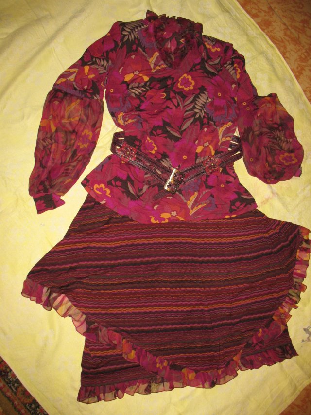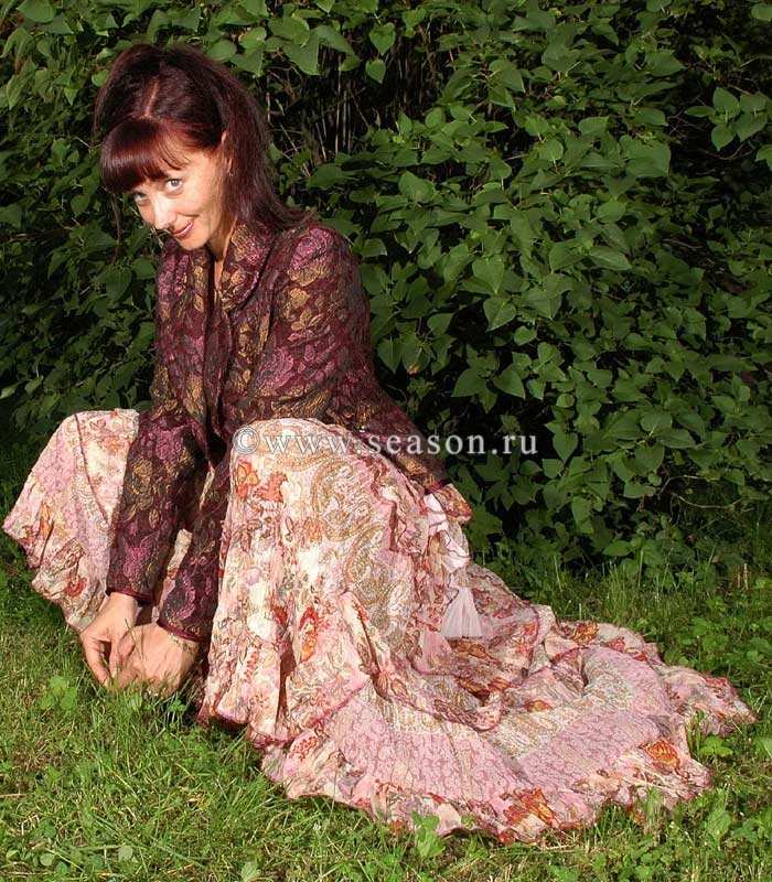Zvezdopad Опубликовано 24 июля, 2008 Поделиться #229 Опубликовано 24 июля, 2008 Надеюсь, первая ткань ещё не стёрлась из памяти.Вот примерно такое я сделала из неё. Другой цвет, правда.Это полиэстер жатка.В магазине решено было сделать из него юбку с множеством ярусов и оборок.НоТкань не понравилась мне сама по себе ( в чистом виде), и был докуплен ещё такой-же полиэстер с розами. Вот из него и сделаны оборки.Фасон юбки здесь не особо видно.К этому всему купили ткань на пиджак тоже с розами. Вам судить - удалось-не удалось.Фото в полный рост выставлю когда нибудь в своей теме. MilaMilaM 1 единственный способ жить хорошо - сразу уходить оттуда, где плохомой канал на YouTube, мой instagram, моя страница ВК Ссылка на сообщение Поделиться на другие сайты Поделиться