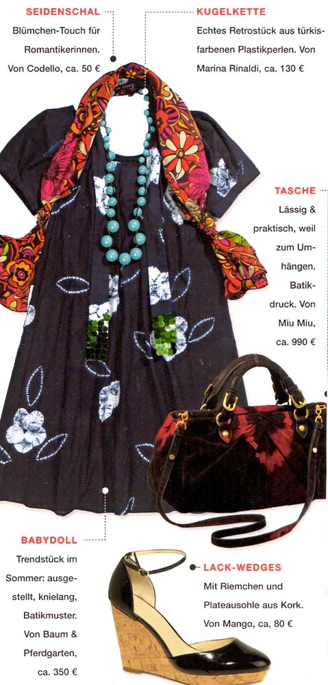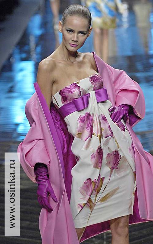 Июль Опубликовано 25 июля, 2008 Поделиться #235 Опубликовано 25 июля, 2008 У цветочных мотивов есть свои законы, они так-же нечётки, как и сами цветы. У цветка нет геометрической чёткой формы, и у закона, как их готовить - тоже.Для меня это, пожалуй, одна из самых сложных задачек -работа с цветочными рисунками. Я, признаться, побаиваюсь цветочных набивок, особенно с крупным цветочным рисунком. Категорически не ношу цветастых юбок – сложности комбинирования с топами. Цветастые топы или блузы иногда позволяю себе – только летом и то закрываю глаза на то, что меня такие набивки безбожно полнят и простят. Платья не ношу в принципе.Как иллюстрацию хочу предложить несколько картинок Вообщем неплохо, выразительно, но на реальной женщине может получиться либо "Родина-мать", если такое платье оденет статная женщина, либо рост невысокой дамы будет съеден. Грамотный крой, вполне в соответствии с рекомендациями, изложенными Zvezdopad, четко виден центр композиции, но несколько скучновато, на мой взгляд. Очень спорное решение, ломает силуэт основательно Ссылка на сообщение Поделиться на другие сайты Поделиться