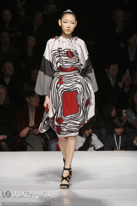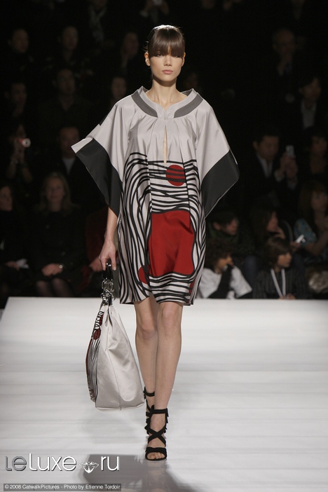 Зимняя Опубликовано 12 августа, 2008 Поделиться #370 Опубликовано 12 августа, 2008 (изменено) Может кто-то захочет сделать анализ той или иной модели - велкам!Ну что ж, попробую. ;) Во-первых, конечно, у таких титанов, как Кензо, нет такой проблемы как приспосабливать геометрические рисунки к фасонам. :) Им уже делают именные ткани по их эскизам. И поэтому у них также не возникает проблемы приноравливаться к величине, цветуи направлению рисунка, - все параметры уже заранее известны. Во-вторых, ;) нам приходится исходить из того, что мы имеем. :) Из этих трех моделей лично мне наиболее привлекательна третья модель. Первые две - это такие вращающиеся красные планетки вокруг большого красного квадратного солнца.Пути этих планеток предопределены, и поэтому хотя и есть общее ощущение движения, но какого-то установившегося движения по кругу.А в третьей модели - рисунок наиболее динамичен, потому что разомкнут. Рисунок движется вместе с движениями манекенщицы, линии графического дизайна переходят в косые линии кроя и складки юбки.Очень симпатично общее настроение асимметрии, красные остроугольные фигуры добавляют характера и цвета в общую ахроматическую схему. А в противовес - ткань собрана в мягкие складки в районе ворота. Очень продуманная, динамичная модель. Насколько эта модель жизнеспособна в каждодневной жизни - понятия не имею. :)) Изменено 12 августа, 2008 пользователем Зимняя "Живу и одеваюсь с Парижем в душе " (с) Юлиана. Ссылка на сообщение Поделиться на другие сайты Поделиться