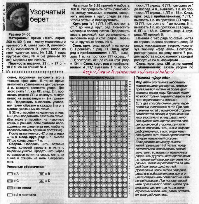 Lidok Опубликовано 11 ноября, 2011 Поделиться #24 Опубликовано 11 ноября, 2011 В закромах нашелся такой беретик.Сама не проверяла ,надеюсь полное описание. Ссылка на сообщение Поделиться на другие сайты Поделиться