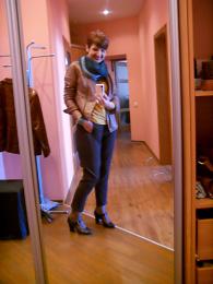 брючки правда выглядят хулиганисто, Вера, у тебя, впрочем, все вещи с настроением). Образ мне очень нравится в целом: брючки, жакетик, шарфик, улыбка и стрижка - красота