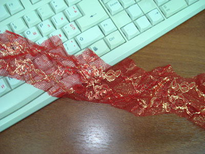 муха Опубликовано 24 сентября, 2006 Автор Поделиться #15 Опубликовано 24 сентября, 2006 (изменено) Т.В.,Вы как всегда очень внимательны. Крой у юбки действительно солнце: сзади трехслойный хвост, а спереди совсем коротко до 30см от талии.Ткани - на юбке шифон и креп-атлас (в качестве подкладки на верхней части юбки) -на топе лайкра и красные с золотым напылением эластичные кружава.Прикладываю эскиз и фотку кружавов, для лучшего понимания моей мысли.над платьем пришлось потрудиться: каждый фрагмент на топе, вырезан и пришит зигзагообразной строчкой. Изменено 24 сентября, 2006 пользователем муха Бз-з-з-з! Ссылка на сообщение Поделиться на другие сайты Поделиться