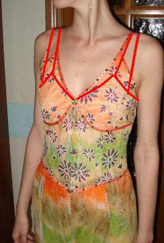 муха Опубликовано 20 августа, 2007 Автор Поделиться #261 Опубликовано 20 августа, 2007 Извините за долгое отсутствие. citymark, услишав, а вернее увидев, ваше предложение по поводу юбки, теперь думаю, что так и надо было бы сделать. Про "Лес" вы тоже правильно сказали и мне ваш вариант шнуровки очень , очень нравиться, обязательно как-нибудь, где-нибудь применю. Но тут есть некоторые подводные камни, которые мне пришлось обойти.Девушка слегка запустила себя и у нее на данный момент небольшие отложения между грудью и подмышкой, на мой взгляд, это не очень эстетично смотриться, поэтому на этом платье все именно так. Там еще на левом плече брителька, в обшем вся конструкция приспособлена.Спереди выкроенная деталь максимально закрывает всё что нужно было закрыть, а брители подтягивают и поддерживают платье в нужном положении, а если расположить как в продемонстрированном вами варианте, то необходимая функциональня закрытость исчезнет.Наверное, то чем я сейчас занимаюсь и называется макетированием.Я сначала делаю основу(это я так ее называю) из бязи. На ней уточнаяю расположение вытачек, дозакраваю вытачки на спине и над грудью, а потом крою на основной ткани.citymark, а вы потом отдаете эту основку клиентке? Я просто выбрасываю, может не надо так радикально.Догада, ткань в магазине называется "бифлекс", но я очень сомневаюсь, что это ее настоящее название. Даже не смогу описать ее, просто хорошо легла.Да и, к стати, про складки, прочитала что не в коем случае нельзя сметанное под складки гладить, значит я точно не правильно делала. Я прогладила все и потом удивлялась как люди делают эти складки и не видно этой ерунды(маленьких дырочек от сметки).Хотя в ателье написанно, что их надо сметывать и гладить.В общем в этом месте я пока запуталась.Бурлакова Фрося и Юлиана, спасибо, что уму разуму меня учите, понасмотрелась, теперь буду больше внимания обращать на такие нюансы.Теперь постараюсь объяснить свою точку зрения на этот вопрос.У меня были определенные условия: Вырез должен быть именно такой глубины, и именно такой формы, как у маечки, под грудью должен быть подрез и на линии талии тоже. Исходя из этих требований получился именно этот вариант. Не стоит забывать, что цифровой фотоаппарат ужасно искажает пропорции.При такой глубине выреза, другой формы подрез под грудью у меня бы просто не получился. Если немного углубить вырез, то линия подреза станет не такой изогнутой.Сама форма чашечки полностью повторяет ту маечку , которая была взята за основу.Юлиана, ваш вариант чашечки очень хорош, мне понравилось, то как вы это все показали. Спасибо.Теперь линия соединения юбки и лифа. Ну не хватило у меня ткани на полноценный изгиб. Именно в том самом месте случился небольшой брачок на ткани и все тут. Изначально линия соединения планировалась чуть ниже.Если честно, я больше волновалась, что два цветка посередине нижней части лифа будут глаза мозолить.Бурлакова Фрося, приглашаю Вас заглянуть в галерею, там есть спинка платья из саари. Бз-з-з-з! Ссылка на сообщение Поделиться на другие сайты Поделиться