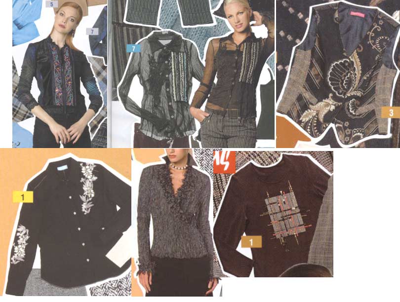 Добавляю приемы, что мне понравилось из дизайна одежды в каталоге магазина. Крупнее сделать было невозможно, как идею - рассмотреть можно :)