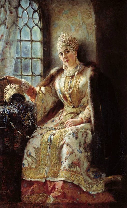 Перерыла весь интернет. Пересмотрела очень много картин русских художников, которые писали русских красавиц. Но они все взрослые. И все замужние, так как волосы спрятаны. Красота ....
