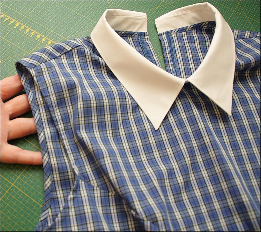 Обработка горловины косой бейкой из основной ткани на платье