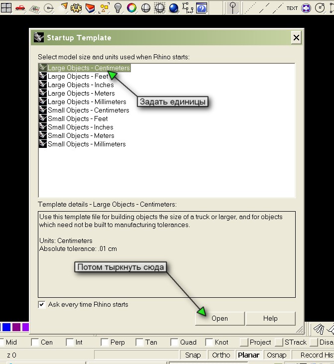 когда вы открываете Рино, у вас должно выпадать окно, в котором необходимо задать единицы измерения...