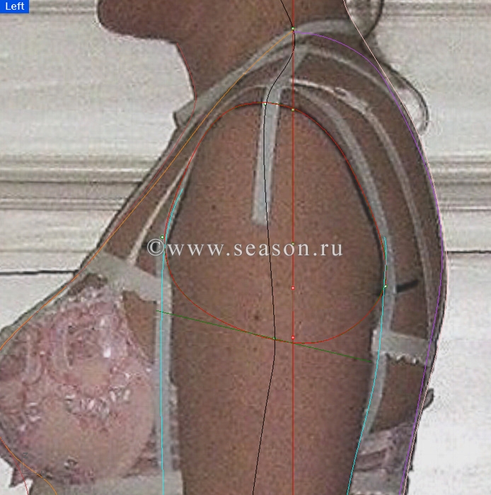 Zvezdopad Опубликовано 14 марта, 2010 Автор Поделиться #56 Опубликовано 14 марта, 2010 Рисуем линию по второму рельефу передаОна должна начинаться чуть выше контрольной точки, проходя которую, не забывайте включать првязку Points - кривая обязательно должна проходить через неё! И отключать эту привязку, как пройдёте точку , тоже не забывайте. А то линия будет притягиваться к точке. на этом виде при помощи лампочки отключена линия первого рельефа для наглядности То же проделываем с видом сзади.Важно! Что бы кривые, которые вы рисуете по сбруе проходили через контрольные точки. Переходим на вид сбоку Нам надо нарисовать два рельефа по переду и два по спинке.Здесь я уже не включала лампочку, что бы убрать линии. Если до этого момента я показывала все линии одним цветом, то это , что бы не сбивать вас. На самом деле каждый рельеф я крашу в другой цвет. Рассмотрим передний рельеф.Там две линииКрасную начинаем от подбородка, потом идём по рельефу сбруи, потом по контуру тела ( ниже груди), далее смотрим - надо обтягивать животик - обтягиваем, не надо, рисуем плавно- эта линия наш контур фигуры Оранжевая линия - контур сбруи, идущий по рельефу. Что здесь важно - на груди эти линии совпадают. пусть вас не смущает это, просто на фото виднА вторая половинка бюста, ну... не боги мы, не боги...пока, как умеем, так и фотографируем:-) Задние рельефыКакая она ваша клиентка? сутулая, не очень, в общем тут пригодится уже оценочная характеристика фигуры для заднего рельефаРисуем довольно выгнутую спинку, повторяя контур вашей клиентки(фиолетовый контур).Потом начинаем высоко у шеи рисовать кривую , которая - центр нашей спины ( розовый цвет) Обратите внимание , что все линии должны проходить через контрольные точки А вот теперь, когда ВСЕ линии готовы, помечаем их все , зажав клавишу shift, включаем мужика с молотком - Rebuild Curves Non Uniform и сразу одной операцией со всех кривых удаляем лишние точки! То же проделываем на виде спереди и сзади одновременно. Ну, очень экономит время!А уж потом, правим командой Control Points On, по одной кривой. Боковая линияэто песТня...и о ней продолжение следует единственный способ жить хорошо - сразу уходить оттуда, где плохомой канал на YouTube, мой instagram, моя страница ВК Ссылка на сообщение Поделиться на другие сайты Поделиться