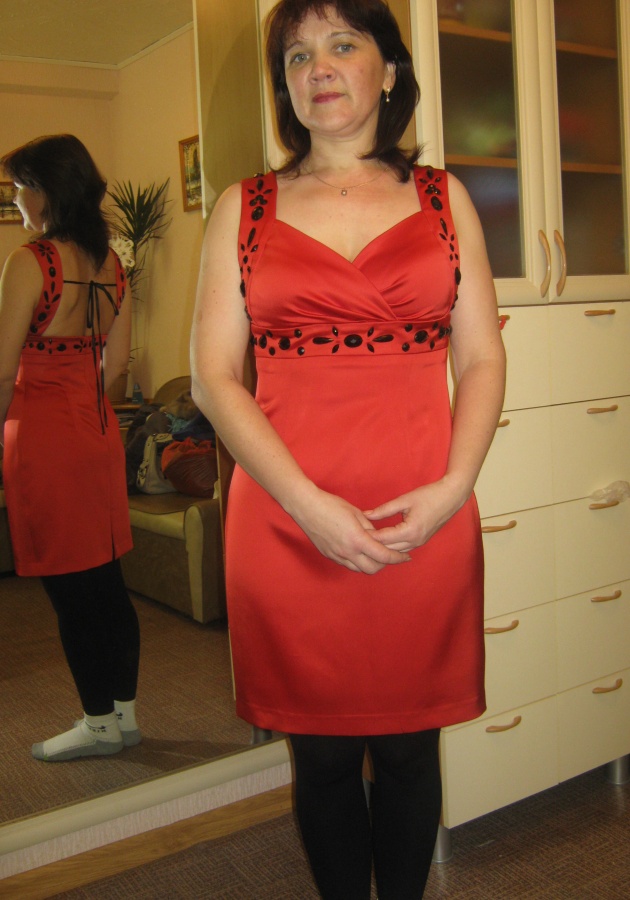 Платье супер! Красиво на хозяйке, фасон замечательный,правда охота похулиганить, дернуть сзади за завязку, чтоб развязалась.