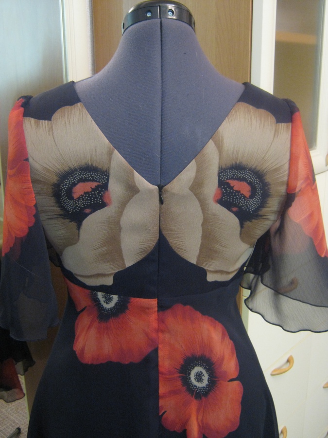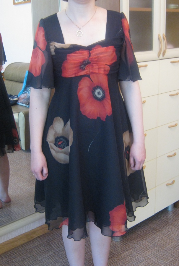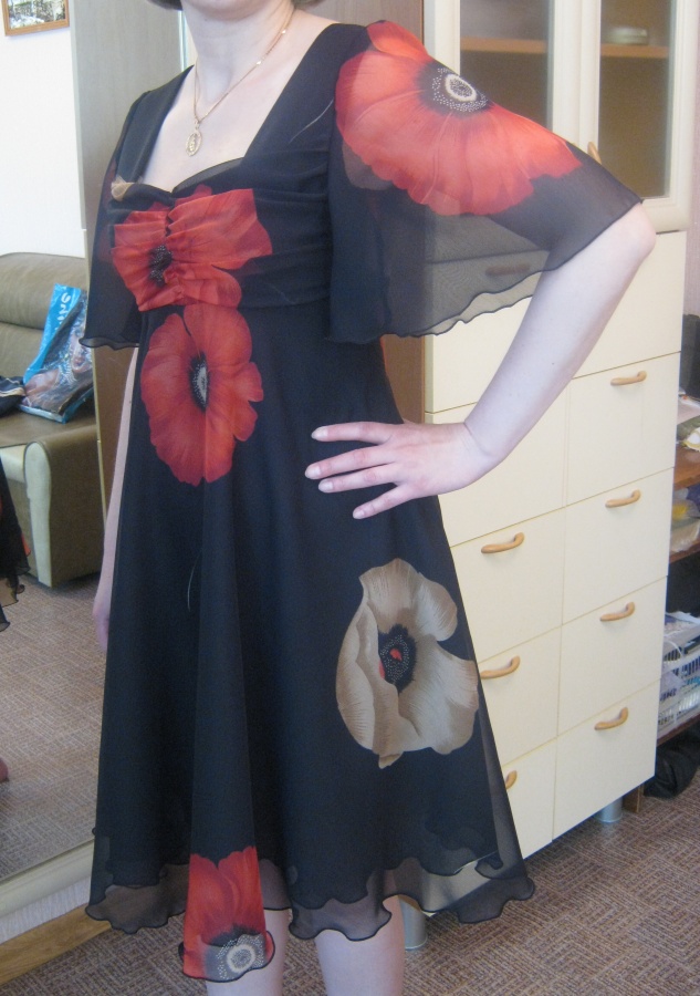 Платье с маками для мамы этой выпускницы, великоваты бедра.... но надеюсь нам удалось это скрыть и уравновесить фигуру...Сзади маки специально подбирались в форме бабочки)) на лифе драпировка...