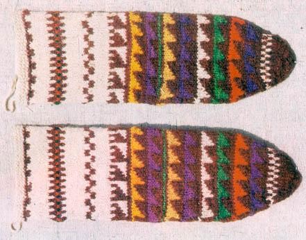 Нафиса_РФ Опубликовано 29 января, 2010 Поделиться #51 Опубликовано 29 января, 2010 Про пятку. Я посмотрела на бабушкиных джурабах (как эталон) потому что тоже ломала голову над хитростью пяток к тому же вспомнила, что она тоже не любила эти дагестанские пятки, мол слишком толсто выходило. Ведь джурабы то носились под галоши или эти как их там-чивекар. а с нашей обувью действительно неудобно. Конечно можно тупо скопировать, а можно попробовать (на то вы и мастерицы) бабушкину же рекомендацию, попробовать русскую пятку. по дагестански же как я поняла нижняя часть пятки вяжется до половины высоты ее БЕЗ прибавок. Краевые всегда обоими нитками всесте. Сам рисунок пятки тот же принцип что и на пяточной части тапочек. Я на всякий случай добавлю объяснение из журнала. Потом убавлять надо из рассчета: сколько вы хотите чтоб осталось на вершине пятки. Разницу разделите на количество рядов чтоб знать по сколько надо будет убавлять в ряду. Убавлять не только с краев перед краевыми а по всей ширине и через ряд. А вот в верней половине пятки прибавляйте только перед краевыми с обеих сторон и в каждом ряду, поэтому верхняя и нижняя часть пятки в джурабах не одинаковы! http://i074.radikal.ru/1001/03/a80b92cc6314.jpgЕще немного. Не надо бояться экспериментировать. Джурабы состоят из основной части, боковой полосы и голенища (рисунок на нем в основном горизонтальными полосами, но не всегда). Так вот, ввиду того что боковые полоски ступни разной ширины, можно их менять чтоб связать нужной ширины без изменений центрального рисунка. Тот что ЛГорностай назвала рыбками зовется также "ахцерун ц!еликъ" типа ахтынский вьюнок. это самый распространенный вид голенища. есть еще несколько красивых. Рисунок на голенище левого джураба из самого первого в этой теме зовется "летучая мышь" Розы на джурабах, говорят, появились поздно, это не старинный рисунок, но вариантов их- туча. Вот несколько. http://s002.radikal.ru/i199/1001/4c/32025772d01d.jpghttp://i076.radikal.ru/1001/78/001a7f73bb9d.jpg http://s53.radikal.ru/i142/1001/45/9ffca146046c.jpg Ссылка на сообщение Поделиться на другие сайты Поделиться