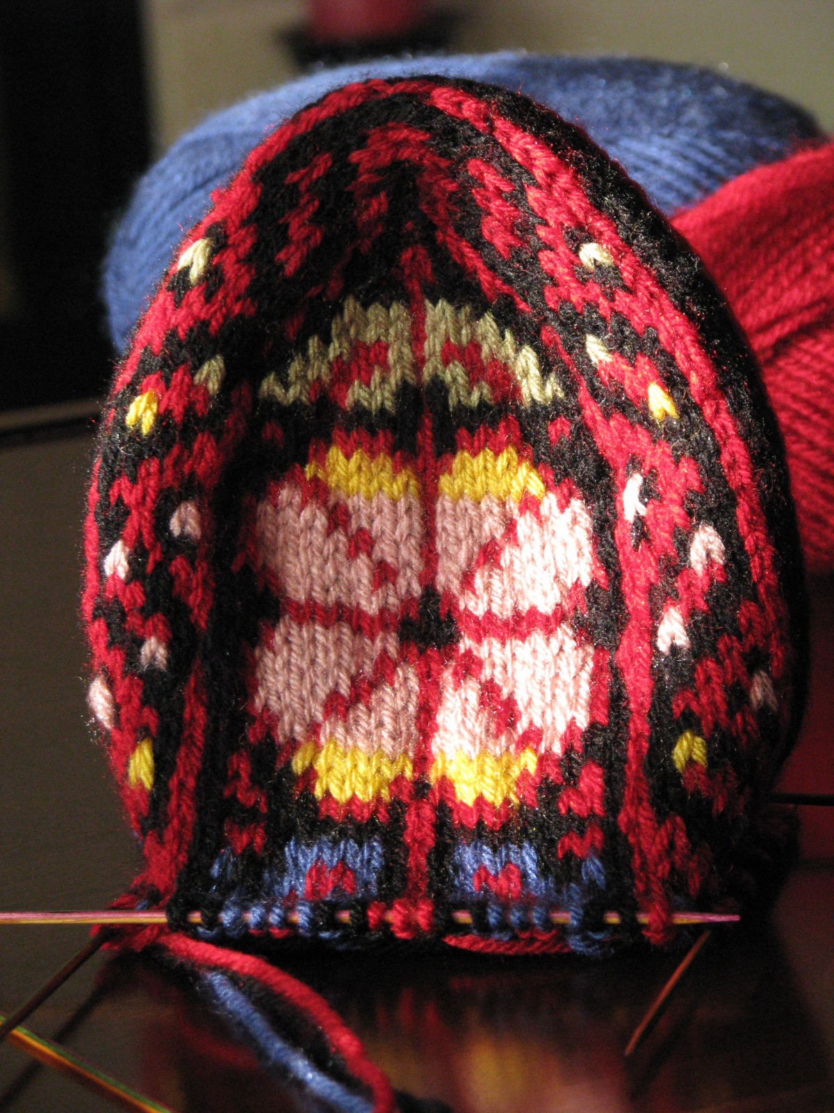 Lgornostaj Опубликовано 23 февраля, 2010 Автор Поделиться #165 Опубликовано 23 февраля, 2010 Вариант с розами по-моему лезгинский.Нафиса призывала не бояться компоновать рисунки самим,(можно посмотреть в п.45, как она делала).У лезгинских в большинстве пятка не узорная(п101), но можно попробовать.. с рисунком.Посмотрите п.92 там есть варианты... и голенища в том числе.Я обычно на голенище делаю "рыбки"( по-национальному не выговоришь), а одну полосу на голенище делают бирюзовую.Только в последовательности вязания пяток есть различия.Лезгинская без узоров вяжется после окончания голенища ( как палец на варежках), а узорная -по порядку: стопа-пятка-голенище.По-моему так. Ссылка на сообщение Поделиться на другие сайты Поделиться