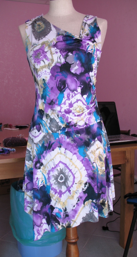 На спинке бретелька ещё не доделана.Юбка выкроена ассиметричным углом.