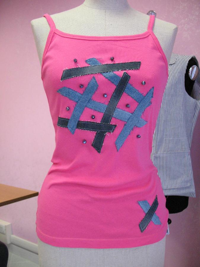 А это джинсовый декор на майке,ничё особенного правда- нарезала полоски и настрочила,между