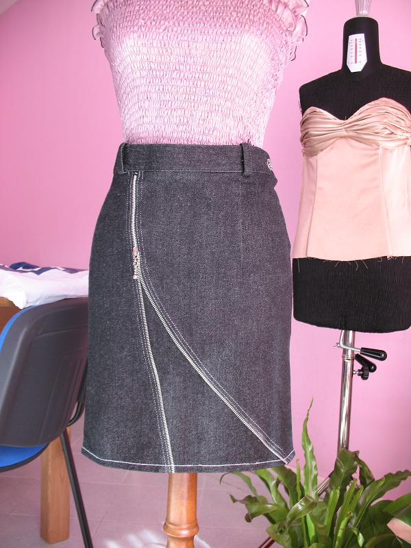 Юбка джинсовая поразила, действительно грубая, но Вы ее так облагородили! молния такую интригу задает.