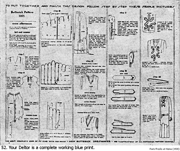 Винтажные выкройки того периода, простите, не отличаются большой сложностью в построении. Практически все они очень свободны в облегании, но при этом рассчитаны на другой рост и другую осанку. Вот информация по одной из винтажных выкроек из книги того времени, иллюстрирующей как читать инструкции по шитью.
