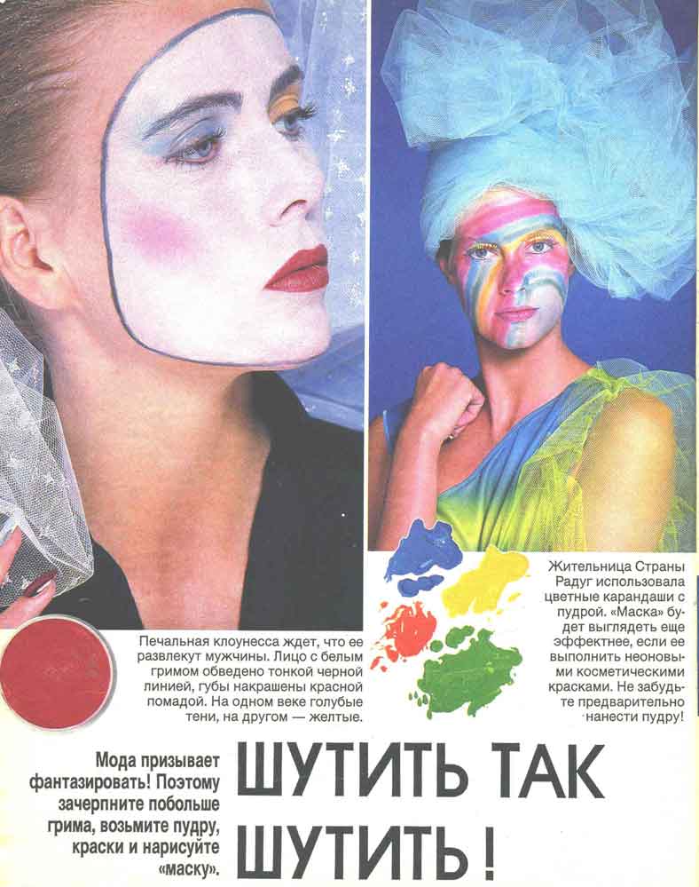 исток Опубликовано 4 апреля, 2011 Поделиться #4 Опубликовано 4 апреля, 2011 Маски из краски (Взято с сайта Либрусек.) Попробуйте научиться делать профессиональный грим. Конечно, такая работа требует предварительной подготовки, но всему можно научиться, правда?Представьте, как бы мог выглядеть карнавальный герой. Нарисуйте эскиз на бумаге, чтобы не пришлось экспериментировать на лице участника карнавала. А если готовиться некогда и гости уже на пороге, просто нарисуйте каждому гостю небольшой значок-символ участника карнавала: снежинку, звёздочку, рыбку, ёлку и т. д. Кошачья мордочка Нанесите на лоб, щёки, нос и подбородок бежевый тон. Проведите кисточкой белую изогнутую линию по направлению от внутреннего уголка глаза ко лбу.Раскрасьте белым цветом пространство под носом, обозначая место, откуда растут усики.Чёрным цветом подчеркните нижнее веко, закрасьте кончик носа и проведите вертикальную линию от носа к верхней губе. Губы покрасьте чёрным или красным цветом.Нарисуйте чёрные точки и усы над верхней губой, не слишком нажимая на кисточку, чтобы линия получилась тонкой и легкой. Над бровями сделайте несколько штрихов-«волосков». Заячья мордочка Не трогая веки, скулы, кончик носа и подбородок, покройте лицо гримом серого цвета. Белым гримом нарисуйте пятна под носом, над бровями и под нижней губой. Чёрным цветом обведите белые пятна, чтобы получились высокие брови треугольником. От носа к верхней губе проведите линию, которая изобразит раздвоенную заячью губу. Над верхней губой нарисуйте точки и волоски усов. От нижней губы вниз нарисуйте два больших зуба. Начерните кончик носа. Подведите глаза, чтобы они стали удлинённой формы. Ссылка на сообщение Поделиться на другие сайты Поделиться