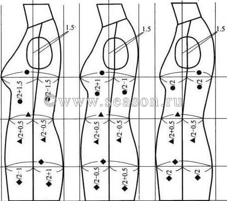 Татьяна Попова(СПб) Опубликовано 16 июня, 2015 Автор Поделиться #2097 Опубликовано 16 июня, 2015 Дуги пересеклись «сами», после того, как я полностью закрыла весь раствор задней вытачки в пройме спинки и оставила 1 см. на свободу в передней вытачкиМожно и так. Можно оставить 0.5см от плеч.вытачки на свободу; соответственно, немного увеличить часть нагр.вытачки на свободу.А с линией сп, извините, ну ни как не доходит.Сначала думала, может так можно сделать...Тоесть тот участок, который добавился, после того, как проведём прямую линию сп (заштрихованый участок), точно такой же участок нужно убрать (вырезать) со стороны, где проходит передней рельеф.Теоретически можно и так, но тогда надо менять не правую, а левую сторону рельефа.Чтобы распределить вж ... Отсюда следует мы увеличили боковую часть переда на часть вж(заштрихованая часть).Да, правильно. В подтверждение этого- чертеж из книги по конструированию:Если я всё правильно поняла, то передняя вытачка из проймы уменьшиться.Это нормально?Да, если нужно "место" для расширения (вместо Вж по СП) именно в области этого рельефа.Но все эти корректировки необходимо проверять пробником.Вы же не обязаныМы в ответе за тех, кого приручили.... ) Преподаватель курса "Конструирование и моделирование одежды". Cканирование фигур. Построение выкроек в 3D. Моя страница ВК Ссылка на сообщение Поделиться на другие сайты Поделиться