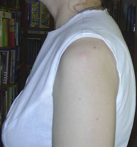 Мананя Опубликовано 16 апреля, 2008 Поделиться #206 Опубликовано 16 апреля, 2008 (изменено) Вертела я ,вертела этот пробник - так и не соображу как скоррегировать мерки ДСт, ДС, ДП, ВГ. Талия на самом пробнике вроде на месте. Растворы вытачек действительно почти "не пострадали". А если просто опустить линию ЦГ см на 1,5-2, больше ничего не меняя? Фотографировала себя сама, потому плечо нормально не удалось снять. С подплечником: Без подплечника: Линия плеча переда у Вас проведена правильно (с=в+1) ?Да. в = 3,2 с = 4,2.И то конца плеча на спинке должна быть лекальная линия (под прямым углом к линии плеча). Но это, наверно, так получилось только на маленьком чертеже?Спереди так и есть, а на спинке в книге написано просто соединить верхнюю сторону вытачки с концом плечевого шва. Изменено 16 апреля, 2008 пользователем Мананя Ссылка на сообщение Поделиться на другие сайты Поделиться