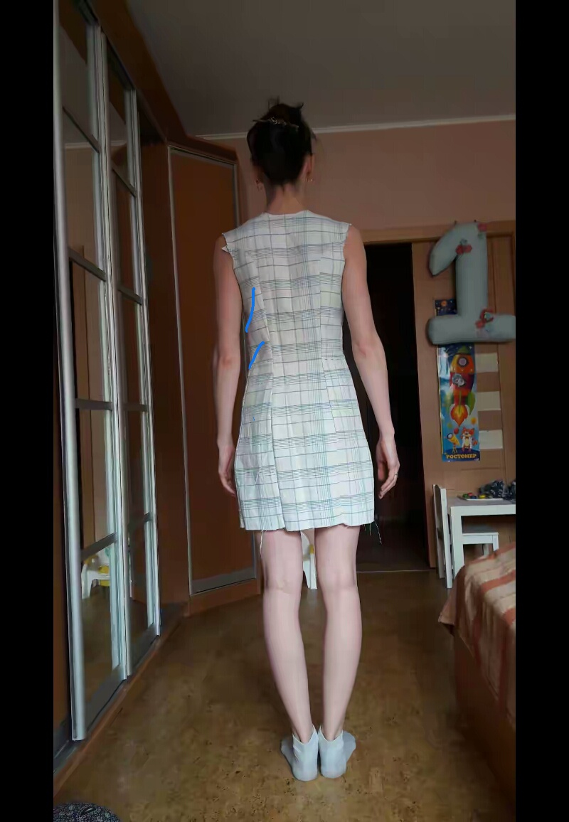 Sodem Опубликовано 8 апреля, 2016 Поделиться #2324 Опубликовано 8 апреля, 2016 Добрый день! Сшила второй пробник. Посмотрите, пожалуйста! Это уже нормальная посадка? Меня в принципе почти все устраивает. По сравнению с первым разом здесь я уменьшила длины спинки, ширину спины на 2 см и ширину проймы на 1 см. Еще сделала без прибавки к от. В первый раз делалаприбавку 4 см. Спина лежит хорошо сейчас, но можно ли в таком варианте делать платье с рукавом? Или следует увеличить шс? Боюсь, что тогда опять будут складки по спине. http://images.vfl.ru/ii/1459769920/90a48d02/12150387_m.jpghttp://images.vfl.ru/ii/1459769964/0a7e5425/12150415_m.jpghttp://images.vfl.ru/ii/1459769995/63575b0b/12150418_m.jpghttp://images.vfl.ru/ii/1459770025/033f2653/12150425_m.jpghttp://images.vfl.ru/ii/1459770056/98799375/12150432_m.jpgShurochka,можете ответить на вопросы?Я попробую вам подсказать или будете ждать Татьяну?Если вдруг захотите ответить,то вопросы такие:1.Вам в груди не тесно?По фото мне показалось, что на груди сильно натянуто.2.На попе ,по моему пустота между попой и тканью.А спереди ткань прилегает к телу ниже талии.Это так?С правой стороны у вас сзади косые заломы с боку.Правое плечо чуть ниже левого.Нужно сделать побольше раствор плечевой вытачки или убрать в плечевом шве (сделать больше наклон плеча на спинке )А спереди наоборот выпустить из плечевого шва,чтоб убрать передние косые заломыИли просто попробуйте плечевой шов распороть и заложить так,чтоб убрать косые заломы спереди и сзади. А прибавку по талии для стройненьких советуют делать 2 см.А прибавка по объёму бёдер есть?. Моя тема. Ссылка на сообщение Поделиться на другие сайты Поделиться