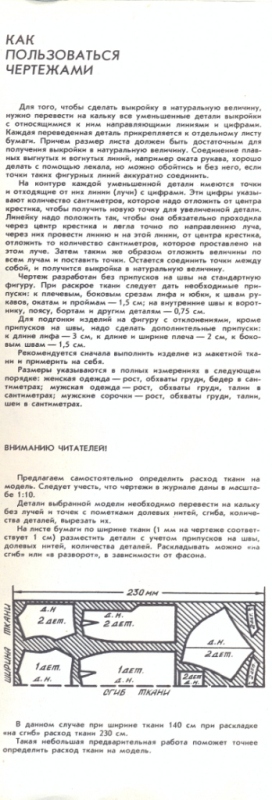 Татьяна Стец Опубликовано 26 февраля, 2010 Поделиться #6 Опубликовано 26 февраля, 2010 Перечитала всё. у меня есть несколько журналов 80-х годов с такой системой кроя. Там смысл в том, что из определённого центра на уменьшенном чертеже по соответствующим, указанным на этом же маленьком чертеже откладывается определённое количество сантиметров, указанное на этом же маленьком чертеже. Вот для примера: Инстаграмм Моя страница в ОК Я в ВК Ссылка на сообщение Поделиться на другие сайты Поделиться