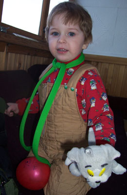 Костюмчик сшит из флисовых шарфиков, купленных по случаю на рынке. Отсюда и идея аппликации (травка) - бахрому выбрасывать жалко было.