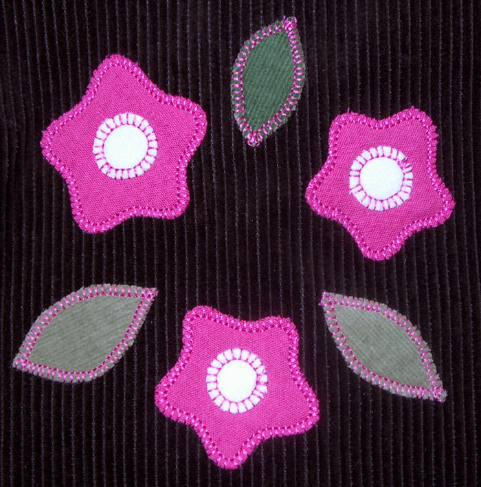 На джинсе нарисовала цветочки и обстрочила "прочным швом" для подмышек и мотни:)