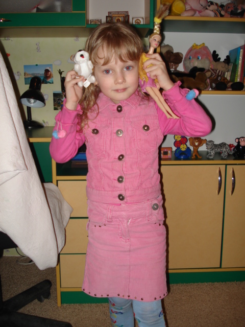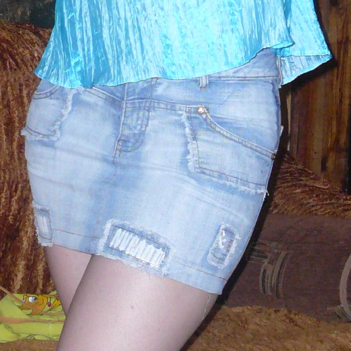 Одёжка для пупса из старого халата. Ещё есть беретик. У меня 2 дочки, 2 племянницы, одежек шьется много. Крою, стоят лоскутков ждут. Больше пока стригут, чем шьют. А ещё племянница и её бывшие джинсы. Она из них "выросла" в ширину. Пошили такую вот юбочку. Носит, ещё одну такую хочет, джинсы уже есть.