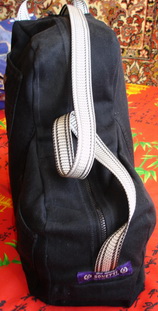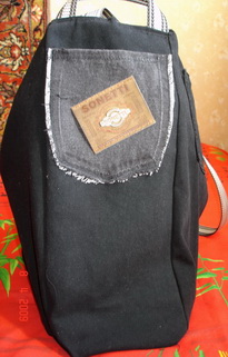 Всем привет, я опять с джинсой. На этот раз мне заказали сумку для вьюноша, катающегося на роликах. Чудовищных размеров получился баул - 45 см. вдоль, 45 см. поперек и 30 см. в ширину. И это еще подросток, мужикам с ногой 45 размера небось вообще чемодан нужон! На это дело пошло полторы штуки джинсовых штанов черного цвета (штанины и карманы, попы можно на дамский ридикюль заначить;)) Ручку и ремень через плечо, молнию вшить (шов для красоты спрятала под лейбл). Карманы только с одной стороны - вторая гладкая, чтоб за куртку не цеплялась. Ну, еще один с торца, для красоты. Главная засада была - сделать с вынимаемым донышком, чтоб стирать без проблем - ролики тинейджера чистотой не блещут ;) Так что на дне карман (газету запихнула для наглядности). Вот. На том свете меня будут кроить и шить джинсы - в отместку за кучу замученных мною:)))