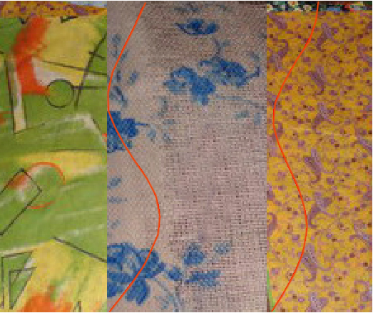 Накладывала материал друг на друга и делала лекальные линии, по ним кроила.
