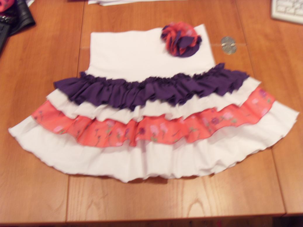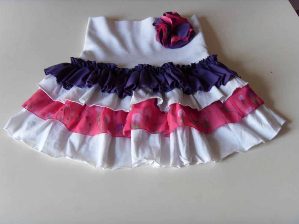 Аппликация и на юбке и на майке одинаковая: сложила "бутерброд" из 3-5 кружочков тканей и поверху прострочила "звезду" несколько раз. Сейчас пока никак, но с первой стиркой необработанные края кружочков разлохматяться и придадут объем (я надеюсь на это ;-) )