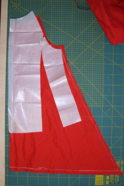 2.Совместила поперечный шов спинки на подкладе и плащёвке, соединила припуски машинной строчкой.
