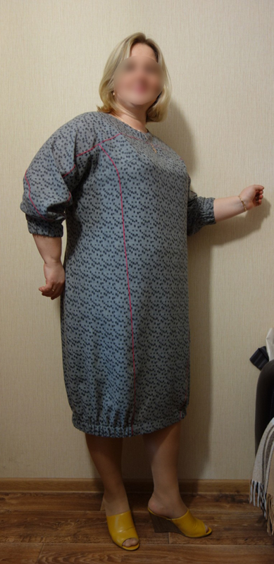 Кашка Опубликовано 17 февраля, 2014 Автор Поделиться #1314 Опубликовано 17 февраля, 2014 Домашнее платье. Вискозный трикотаж би-стрейч, тяжёлый и тягучий+ 100% хлопок для кокетки переда. Всё- разномастный лоскут от разных проектов. Готовая кособейка. Меня давно впечатляли работы Sky по выкройкам Вог. И вот, наконец, попробовала сама. Это первый опыт работы с воговской выкройкой. Немного промахнулась, не учла тяжесть трикотажа,платье отвиселось-стало длиннее, чем было задумано. Но для домашнего платья посчитала это не критичным. На детали переда не хватало, потому прищлось использовать остатки хлопка в полоску. Внутреннюю мешковину выкроила по косой, чтоб хоть как-то приблизить свойства тканей,трикотаж очень тянется.( в оригинале она цельная) Не думайте. Размышления — враг вдохновения. Вы не можете пробовать делать что-то. Вы просто должны делать что-либо. Рей Бредбери Нет хаоса, нет вдохновения. Это как кухня во время обеда. Мэйсон Кули Ссылка на сообщение Поделиться на другие сайты Поделиться