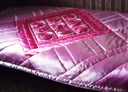 ТА... Опубликовано 28 апреля, 2012 Поделиться #167 Опубликовано 28 апреля, 2012 Очень "принцессное" одеяло. А что за ткань? У нас в магазине она называется "креп-сатин", а вообще-то внешне похожа на атлас, но более стойка к зацепкам. Для принцессы Миланы - королевское одеяло. Татьяна, сложно было шить? Прокладывала чем? а с изнанки какая ткань? Не, Ларис, не сложно, блоки "роза" -вручную, чтобы вышли мягкими (пробовала на машинке - получилось как фанера), а потом - все машинкой. С изнанки - х/б, внутри - синтепон. Само одеяло сшивала кусками (вместе с синтепоном): сшила центральный ромб (топ+синтепон+бэк), потом пришила со всех сторон полосы (топ и бэк), вложила между ними синтепон, потом так же - треугольные куски. Понятно хоть написала? Розы объемные такие получились, прелесть... Кстати, блок "роза"можно посмотреть тут: http://crazymama.ru/forum.php?a=2&id_p...p;page=1#133432 Показываю пододеяльник и наволочку здесь, хоть и не лоскутные изделия, но - дополнения к "Розам для принцессы" А меня зовут Татьяной... Ссылка на сообщение Поделиться на другие сайты Поделиться