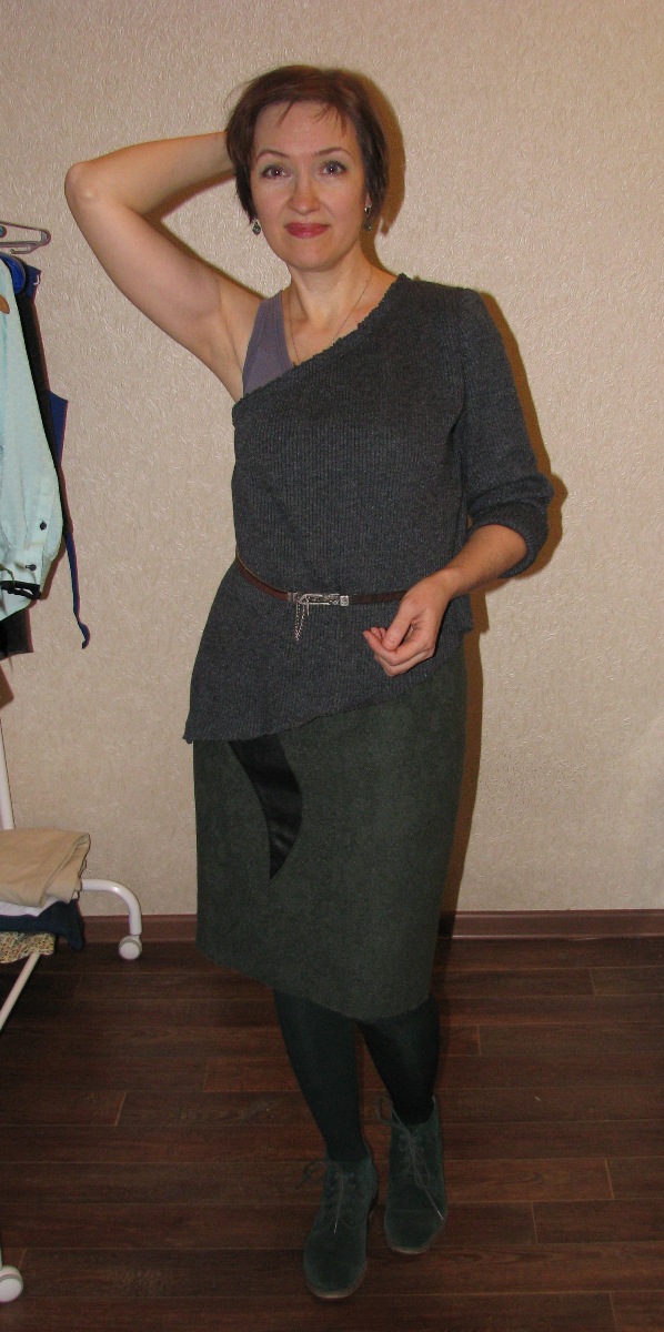 Dakota Опубликовано 5 января, 2017 Поделиться #389 Опубликовано 5 января, 2017 Привет и поздравления с наступившим петушинным (моим!) годом! Девочки , хотела бы услышать мнения о новой тенденции : свитера с одним рукавом. Честно говоря раньше я подобные вещи вообще не воспринимала : одной половине холодно, другой жарко. Но как-то так случилось что вдруг понравилось, быстро раскроила, а сшила и того быстрее. Понять пока не могу : пустить это в мир или не стоит. Выглядит с узкими вельветовыми скини так С не очень узкими джинсами А в народ я решила надеть вместе с юбкой. Ходили в театр с внучкой на детский новогодний спектакль. С пояском И без пояса В плане удобства мне было хорошо. Но хочется взгляда со стороны. В театре на меня косились, невестка странно посмотрела. А мама совсем изворчалась из-за "дурацкой моды", " у тебя ткани не хватило" и пр, и пр. Ссылка на сообщение Поделиться на другие сайты Поделиться