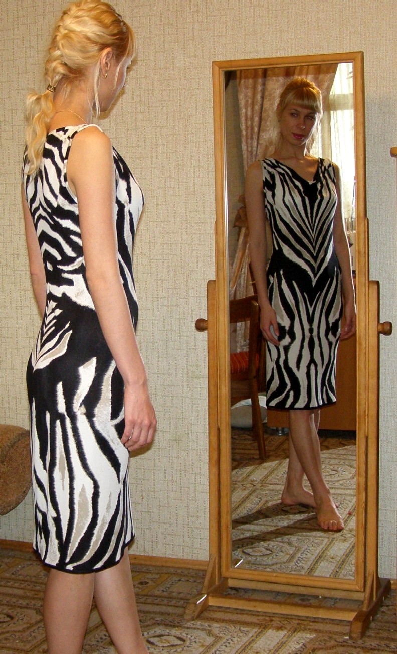 поЛено Опубликовано 17 мая, 2011 Автор Поделиться #375 Опубликовано 17 мая, 2011 Добрый вечер!Ткань, наверное, вы узнали... SKY уже показывала из нее потрясающе красивое платье...У меня был всего один купон, поэтому сделали такую модель- без боковых швов с маленькой качелькой. Фотография пострадала от отсутствия подходящих туфель:)Комментарии и замечания приветствуются, совершенно не знаю, какие описывать подробности, если что-то интересно по этому платью, спрашивайте, с удовольствием отвечу:)вид сбокуСмотрим, какая получилась длина платья...А это изнанка- средний шов спинки и боковая вытачка. Детали обработки. Низ, проймы и горловину спинки обработала бейкой из трикотажа. Низ-черным цветом, потому что и сам купон был обрамлен черной полосой и нам понравилось на примерке, как она выглядит... Мой инстаграм Ссылка на сообщение Поделиться на другие сайты Поделиться