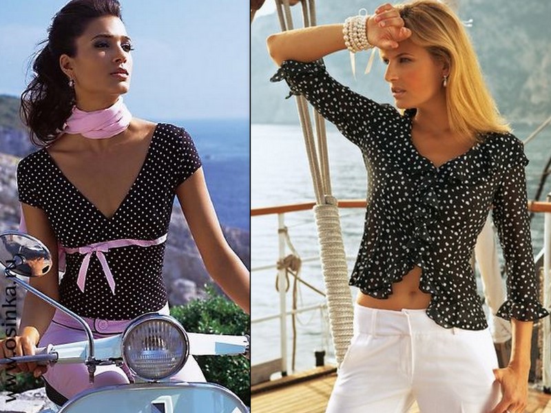 В журнале Burda4-2010 (есть на скачке) на стр. 14 блуза из шифона в крупный белый горох на чёрном фоне). К своему стыду не знаю, как скопировать страницу в формфте .pdf
