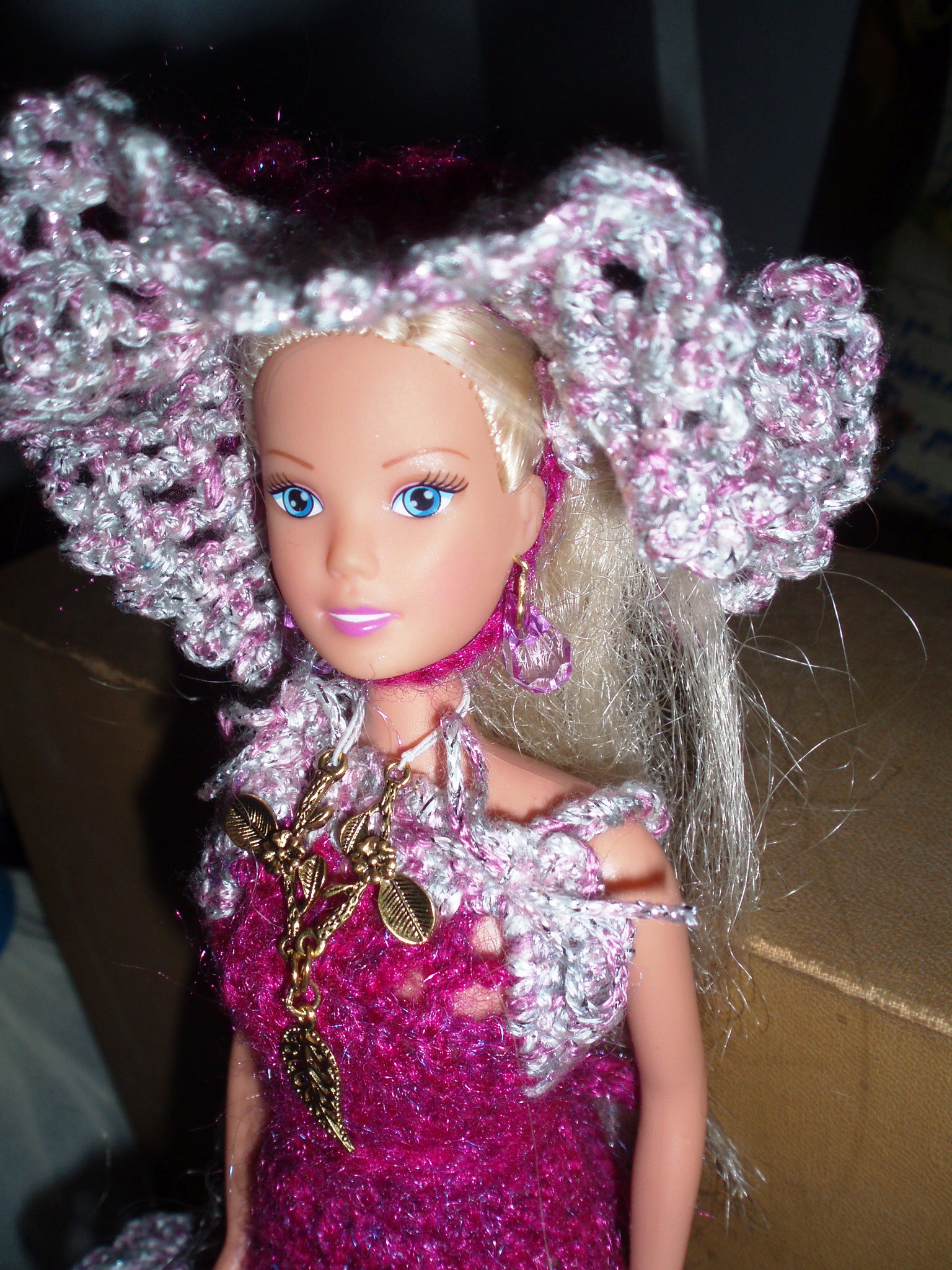 Наряды для Барби. Обувь купила, а сережки и колье делала сама, так же, как и веночек для фаты. Три сшитых наряда и один вязанный. Запковала все на кортоне в файлы, украсила наклейками (что бы как в магазине), но свадебное платье в упаковке сфотографировать не успела.