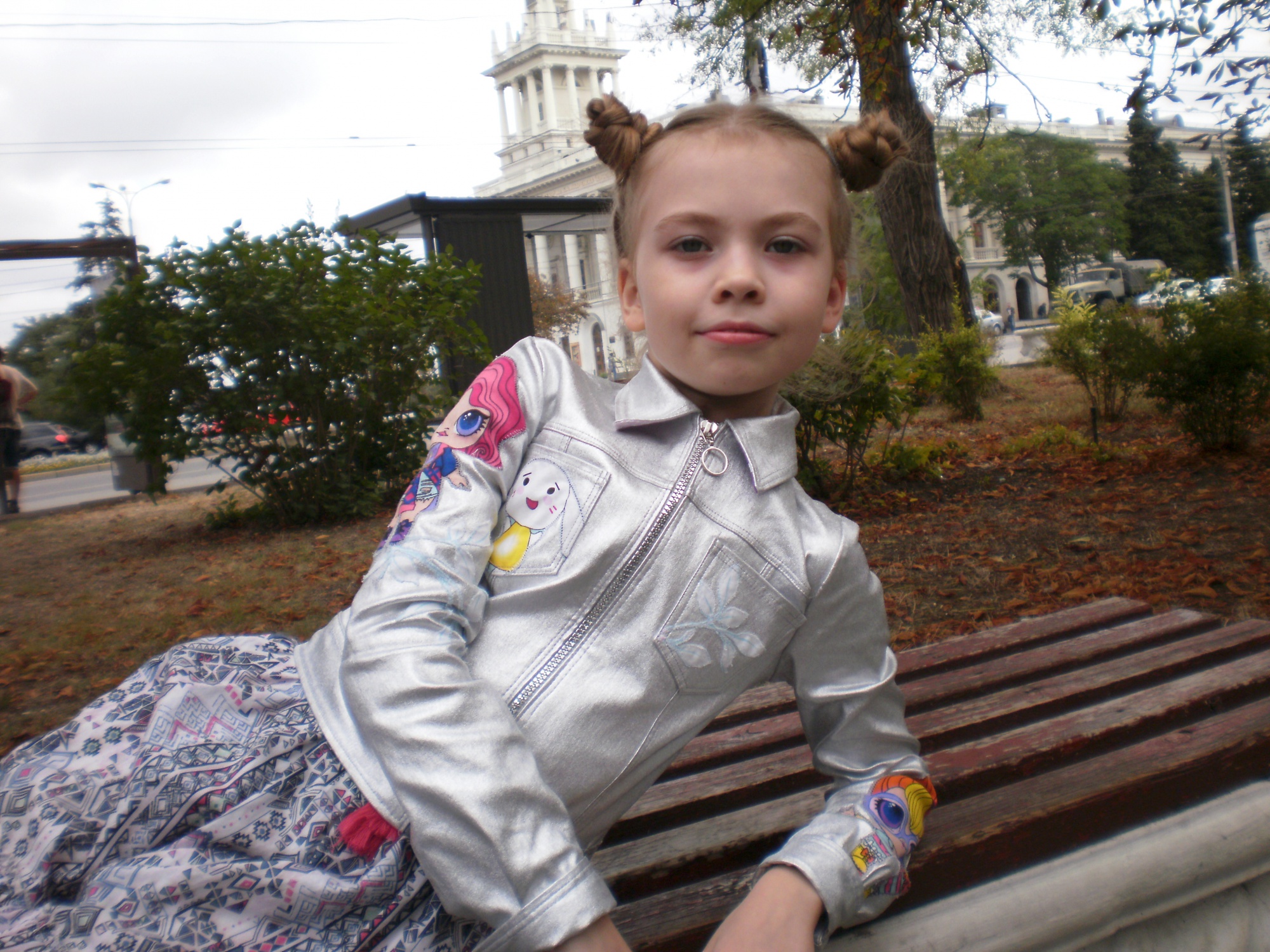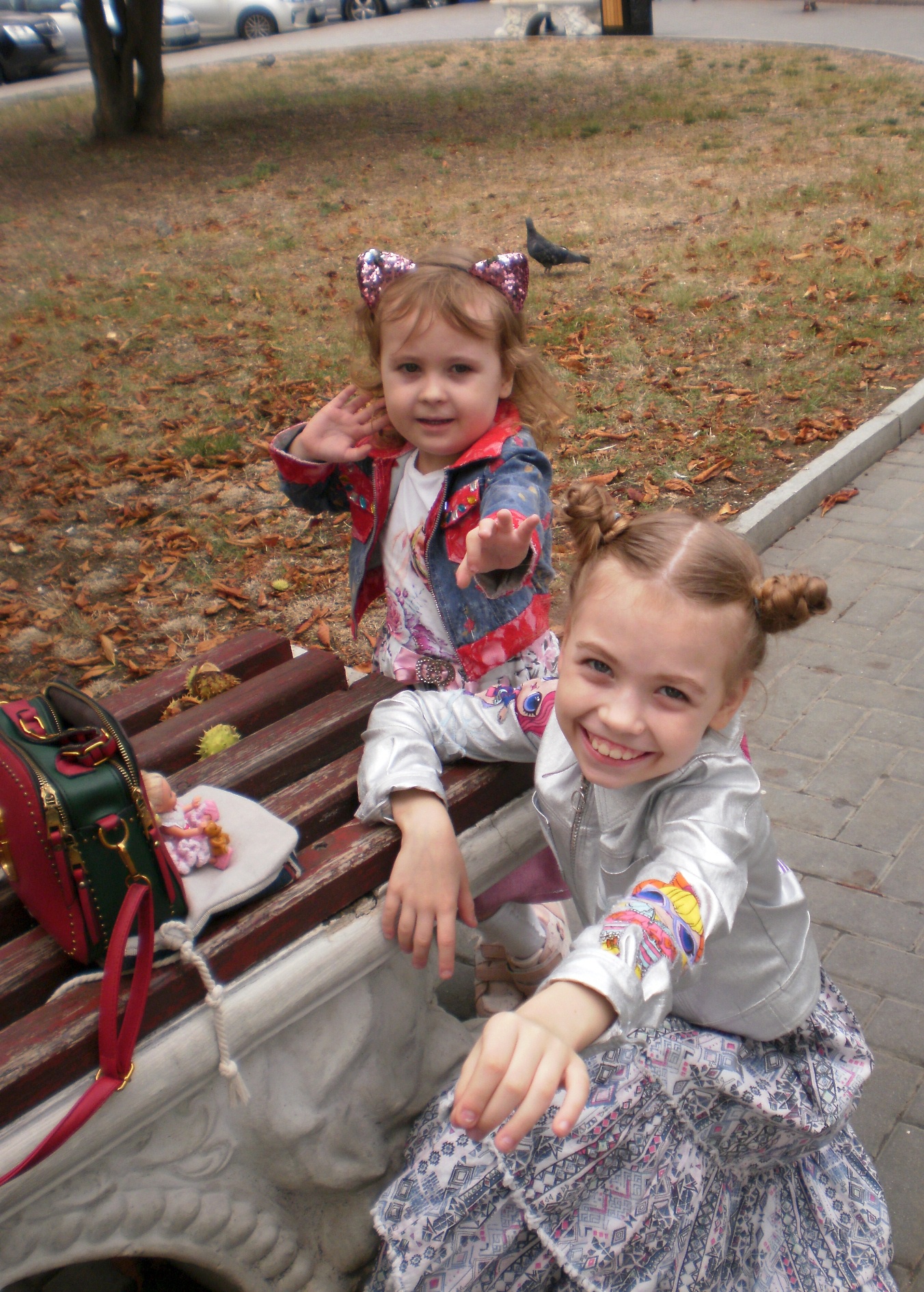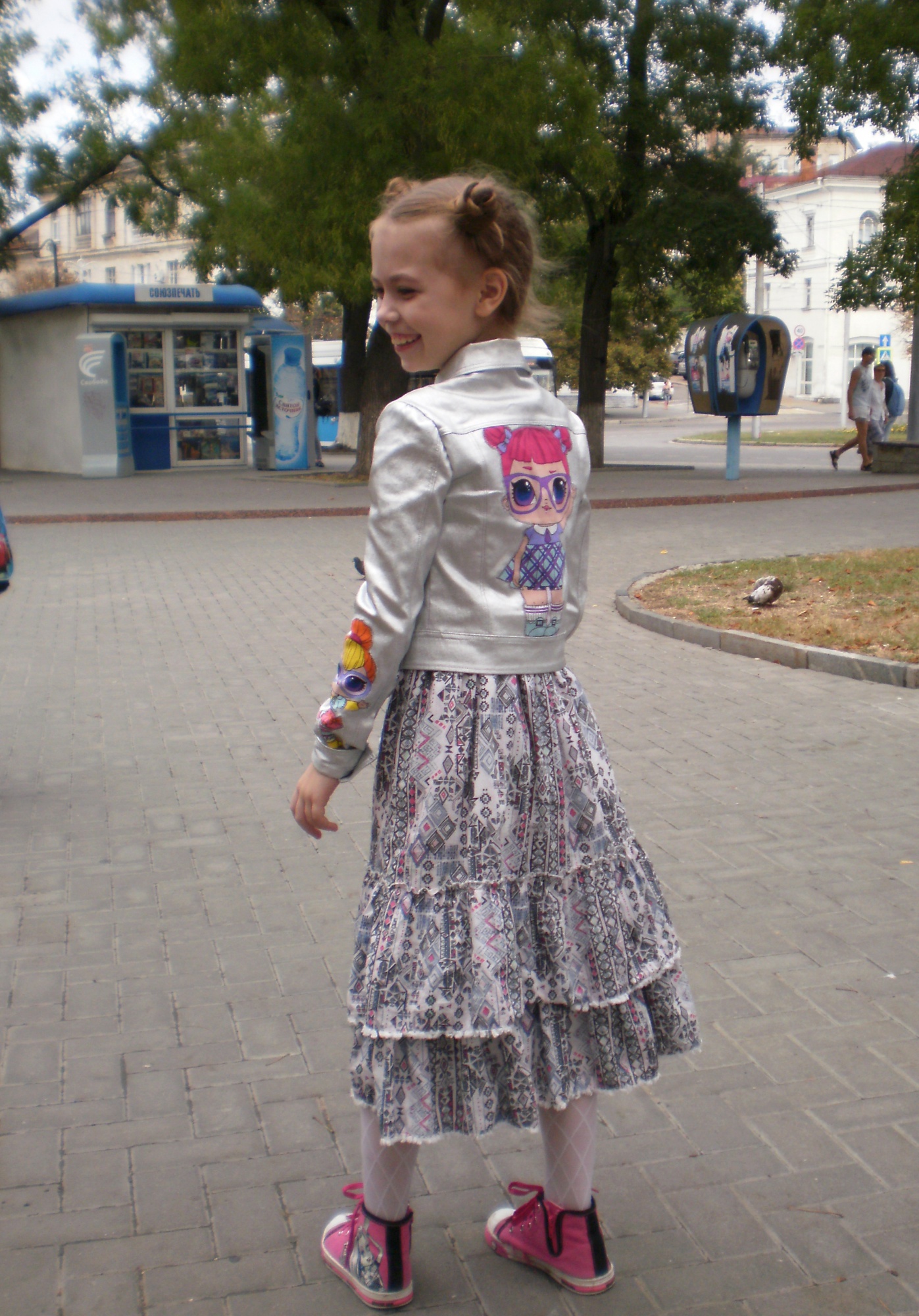 У Сони новая юбка, да и вся ее одежка на фото тоже сшита мной. Курточка перешла по наследству от Алисы)