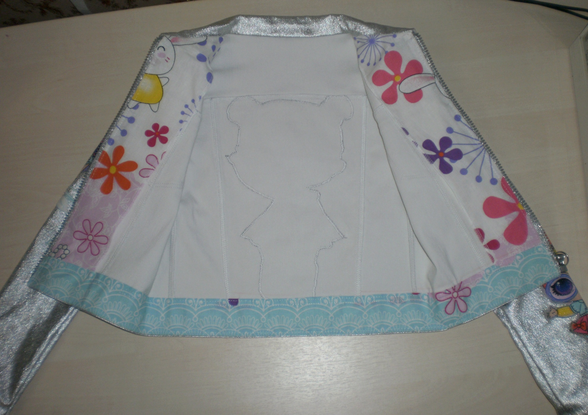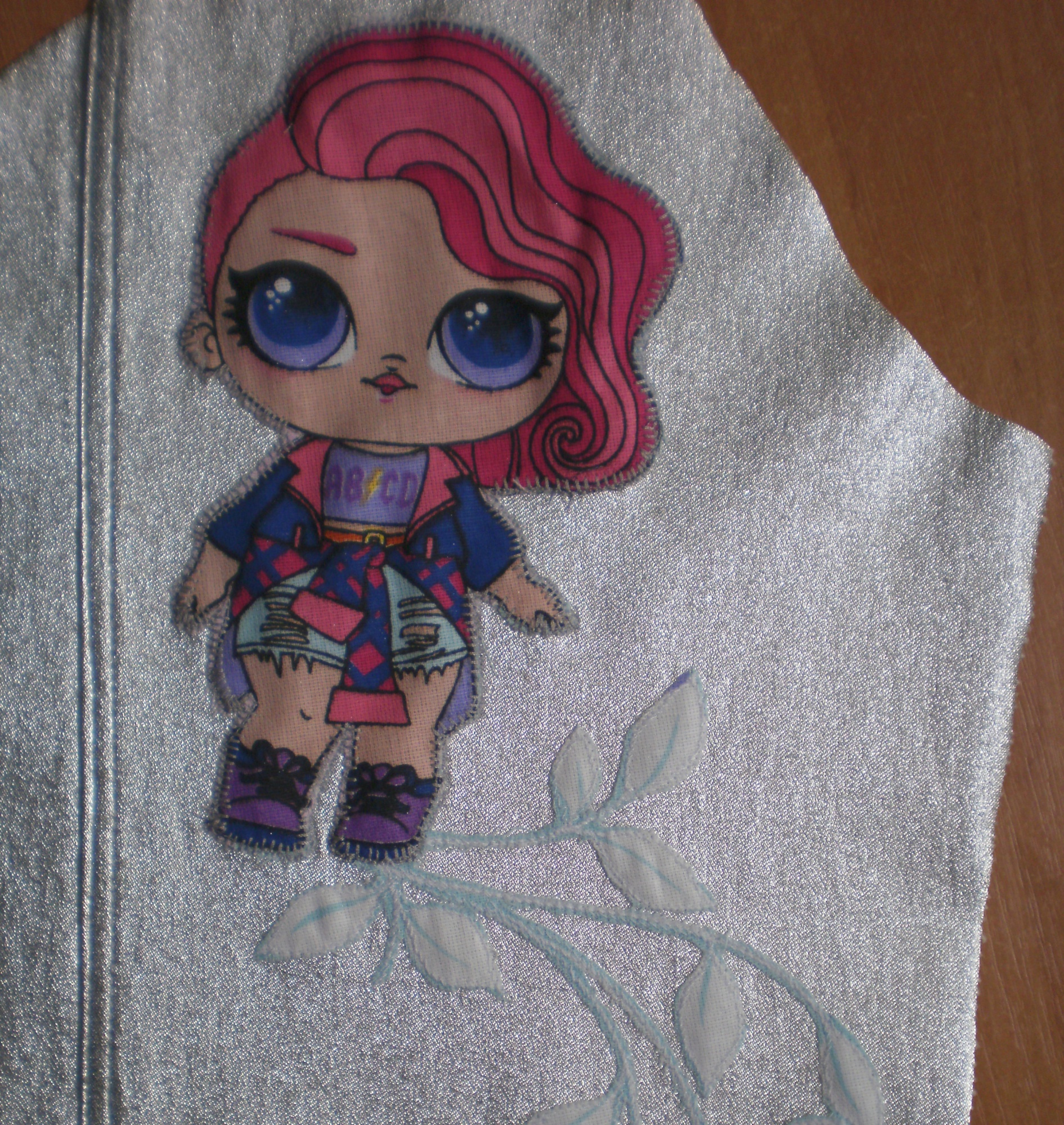 Курточку по типу джинсовой для Алисы. Ткань коттон с серебряным покрытием. Куколки Лол взяты с постельной бязи.