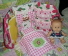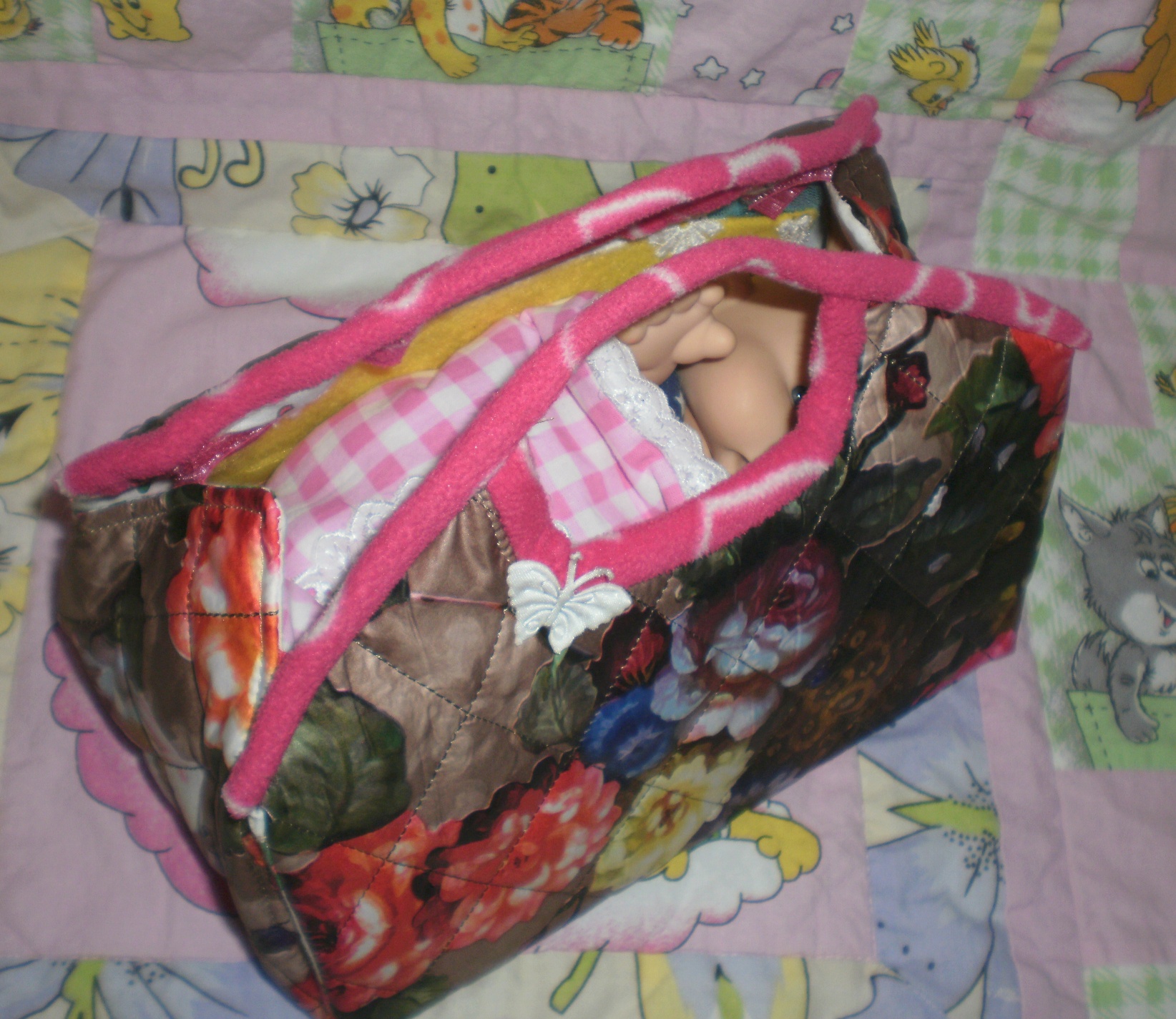 В комплекте с сумочкой сделала постель для куклы — матрац, подушку и одеялко.
